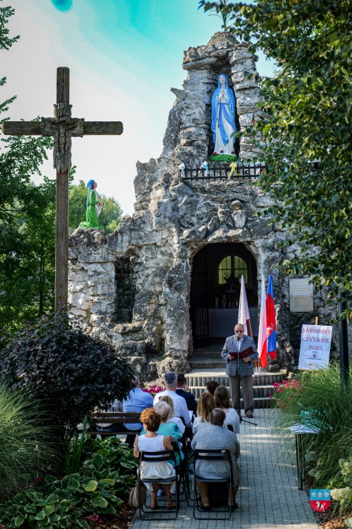 5 września, Gminna Biblioteka Publiczna im. Feliksa Raka w Krasocinie po raz dwunasty włączyła się w akcję Narodowego Czytania zainaugurowaną przez Parę Prezydencką. W piątek o godz. 10:00 w wyjątkowej scenerii, koło groty Najświętszej Marii Panny w Krasocinie, dyrektor biblioteki Magdalena Kowalczyk rozpoczęła spotkanie czytając list od Prezydenta Andrzeja Dudy. Następnie zaproszeni goście odczytali wybrane fraszki, pieśni, psalmy i treny Jana Kochanowskiego, którego poezja została wybrana do narodowej lektury.