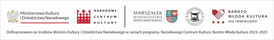 Dofinansowano ze środków Ministra Kultury i Dziedzictwa Narodowego w ramach programu Narodowego Centrum Kultury: Bardzo Młoda Kultura 2023-2025 oraz ze środków Województwa Świętokrzyskiego.