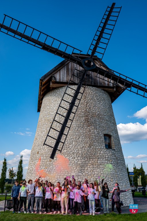 Ostatnim punktem projektu był festiwal kolorów. Wydarzenie zostało zorganizowane w piękne, słoneczne popołudnie 2 października, gdy wraz z młodzieżą z klas siódmych ze Szkoły Podstawowej w Krasocinie udaliśmy się pod zabytkowy wiatrak mieszczący krasockie Muzeum Chleba (będące pod pieczą biblioteki).