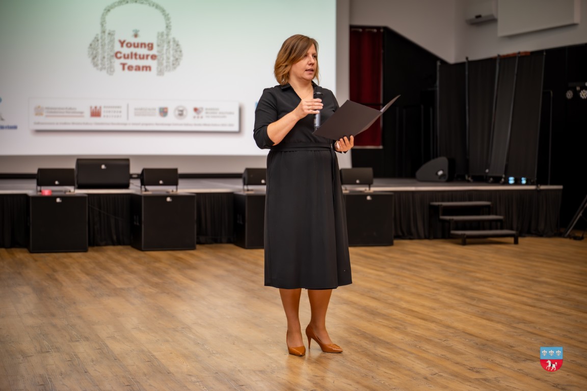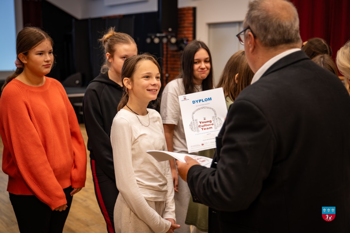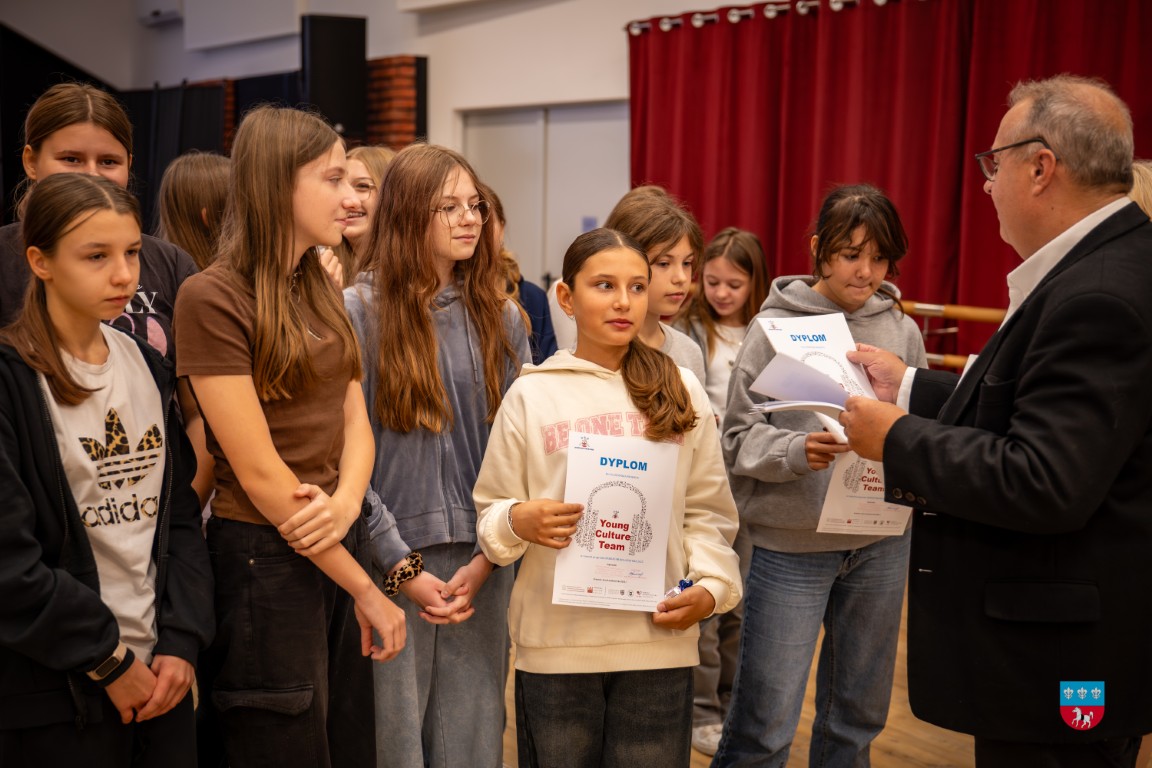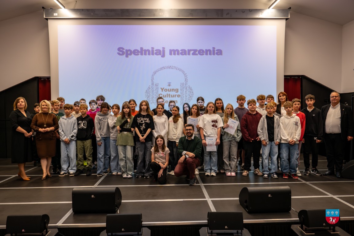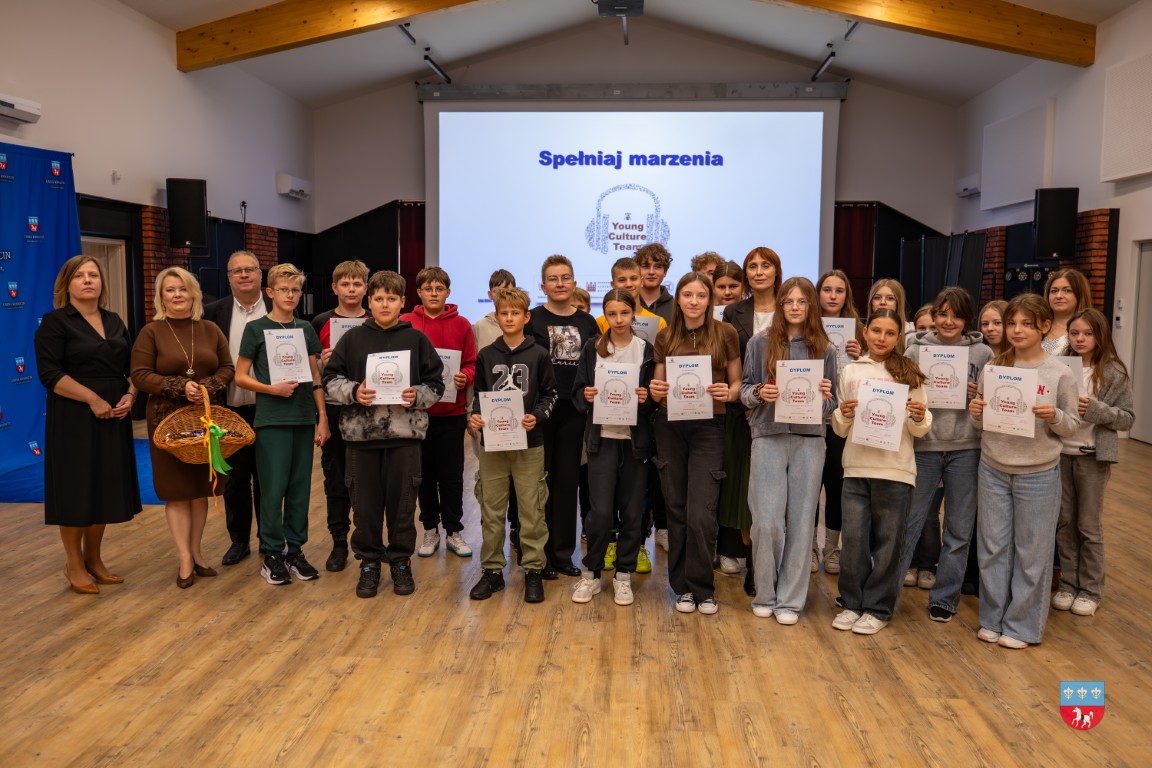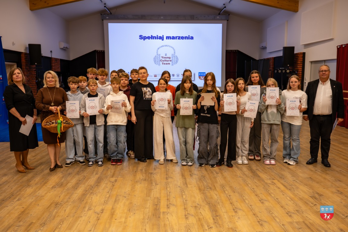 W środę, 8 października 2025 r., odbyło się uroczyste podsumowanie projektu „Spełniaj marzenia – Young Culture Team” w ramach programu Bardzo Młoda Kultura 2025. W podsumowaniu udział wzięli zaproszeni goście – Małgorzata Krzywda, radna Sejmiku Województwa Świętokrzyskiego i Kierownik Parku Etnograficznego w Tokarni; Wójt Gminy Krasocin Ireneusz Gliściński, instruktor wokalu Dominik Kaliszewski, Zastępca Dyrektora Zespołu Placówek Oświatowych im. rtm. Witolda Pileckiego w Krasocinie Monika Jamróz-Ziętal, prezes Stowarzyszenia „Kultura dla wszystkich” Anna Pawelec oraz wychowawcy/nauczyciele i uczniowie klas siódmych z SP w Krasocinie.