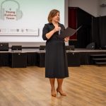 Uczestnicy projektu wzięli także udział w warsztatach emisji głosu i występów publicznych, podczas których młodzież uczyła się pracy nad głosem, postawy ciała i gestykulacji podczas wystąpień, czyli wszystko, o czym powinniśmy pamiętać przemawiając na forum do innych. Warsztaty poprowadziła Ewa Lubacz – aktorka Teatru Lalki i Aktora „Kubuś” w Kielcach im. Stefana Karskiego, szczudlarka, pedagog teatru, prezenter radiowy (Radio Em Kielce, Radio Kielce). Podczas warsztatów Pani Ewa pokazała, jak ważny jest wizerunek, który wpływa na to, jak zostaniemy odebrani w różnych sytuacjach, od występów na apelach, zdawania ustnej matury po obecność w mediach społecznościowych.
